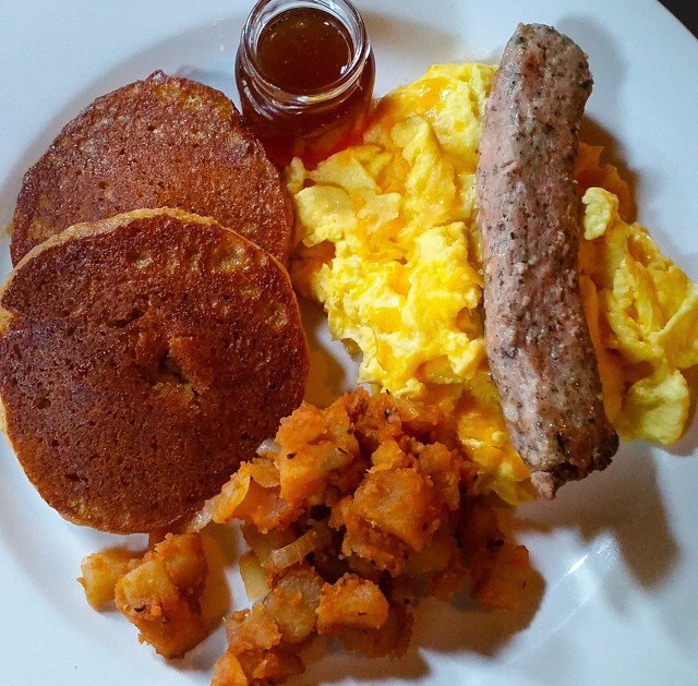 We ordered the eggs benedict and Boomer special. The eggs benedict hit the spot. Starting with the base of a toasty English muffin and then the salty ham topped with the perfectly cooked runny egg. The boomer special is great because it includes a meat, eggs, potatoes, and pancakes. The star of that plate was those pumpkin pancakes! Wow! They were fluffy, light, and sweet with the perfect crisp on the outside. Then I poured that maple butter on top of them and couldn’t believe it, but they were even more delicious! My boyfriend (who calls himself a pancakes connoisseur) agreed that they were some of the best we have had in a while.