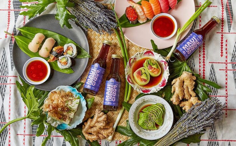 Poi Dog’s Maui Lavender Ponzu’s Lavender blossoms from Maui are steeped with katsuobushi in Japanese yuzu juice, shoyu and rice vinegar, creating a floral version of yuzu ponzu. Dip fried dumplings, sushi and sashimi into Maui Lavender Ponzu instead of soy sauce. Use it to transform noodles into a full meal or add a few dashes to olive oil for a quick, tropical vinaigrette.
